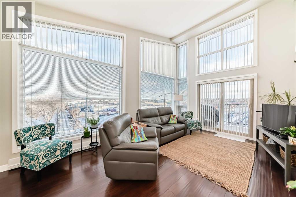 Welcome to this stunning top-floor home in the heart of desirable Highland Park!Boasting over 1,120 sq ft of thoughtfully designed living space, this bright and airy 2-bedroom + den, 2-bathroom corner unit enjoys a coveted south-east exposure and breathtaking vista views from nearly every room. Step inside and be greeted by an abundance of natural light pouring through oversized windows, soaring 14-foot lofted ceilings in the living and dining areas, rich hardwood flooring, upgraded lighting, and ceiling fans throughout. The open-concept living area flows seamlessly to a private balcony with gas BBQ hookup – the perfect spot to take in the panoramic views. The beautifully updated kitchen features custom wood cabinetry with ample storage, sleek stainless steel appliances, and elegant granite countertops. Retreat to the spacious primary suite, flooded with sunlight from large south-facing windows. It offers a generous walk-in closet and a spa-like ensuite complete with a soaker tub, floor-to-ceiling tile, a window for natural light, double vanity with granite counters, and plenty of storage. A second bedroom includes a custom Murphy bed – ideal for guests or flexible use – while a separate den provides the perfect tucked-away home office or creative space. Convenience is key with in-suite laundry, a large entry closet, and additional storage throughout. This exceptional unit also includes secure underground parking and a separate oversized storage locker. Location couldn’t be better! Just steps to the off-leash dog park, and a short stroll to trendy Center Street’s cafes, shops, and restaurants. Pride of ownership shines throughout – this one won’t last! (id:53430)