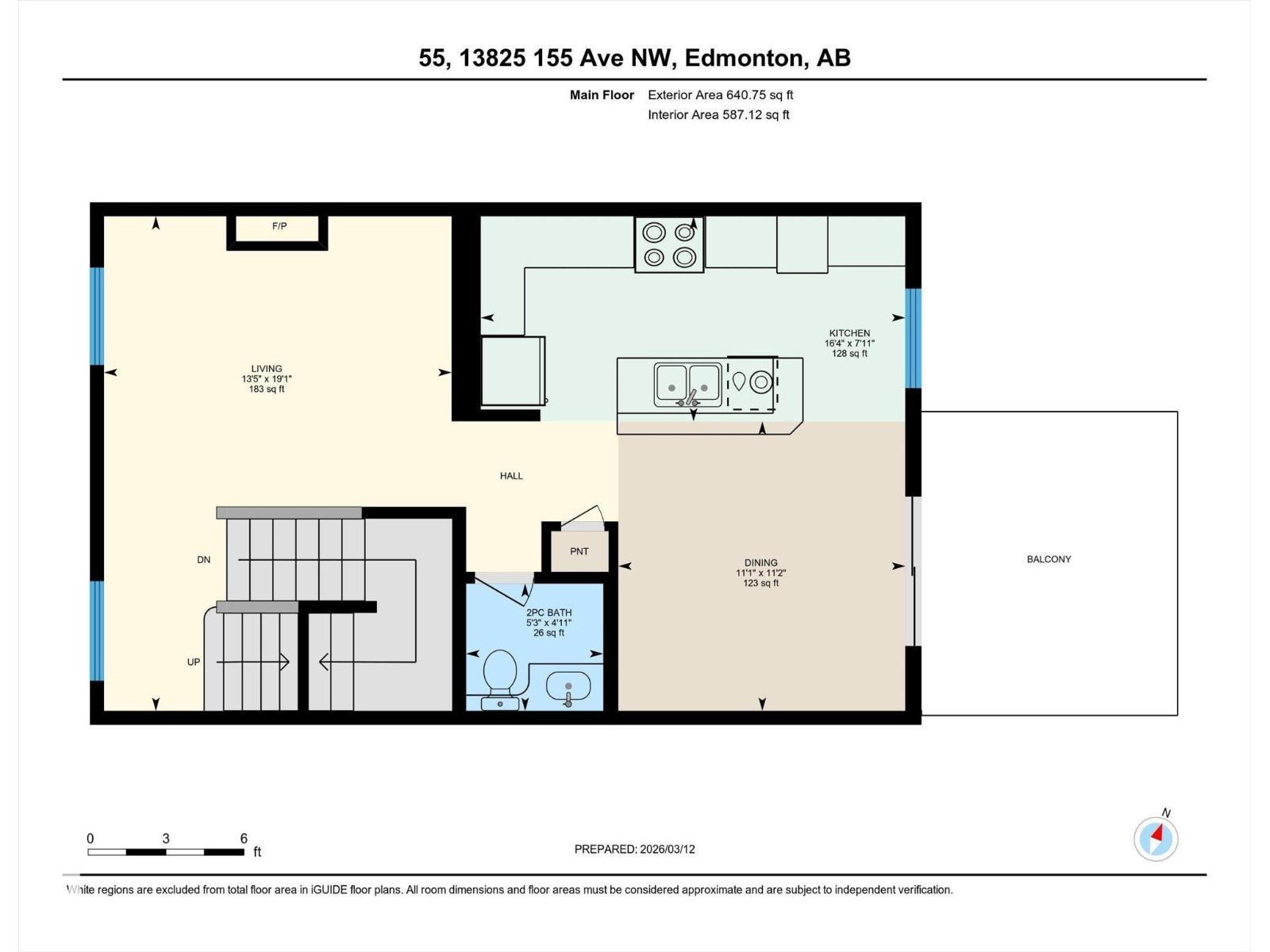 | Living room | Main level | 4.08m x 5.80m |