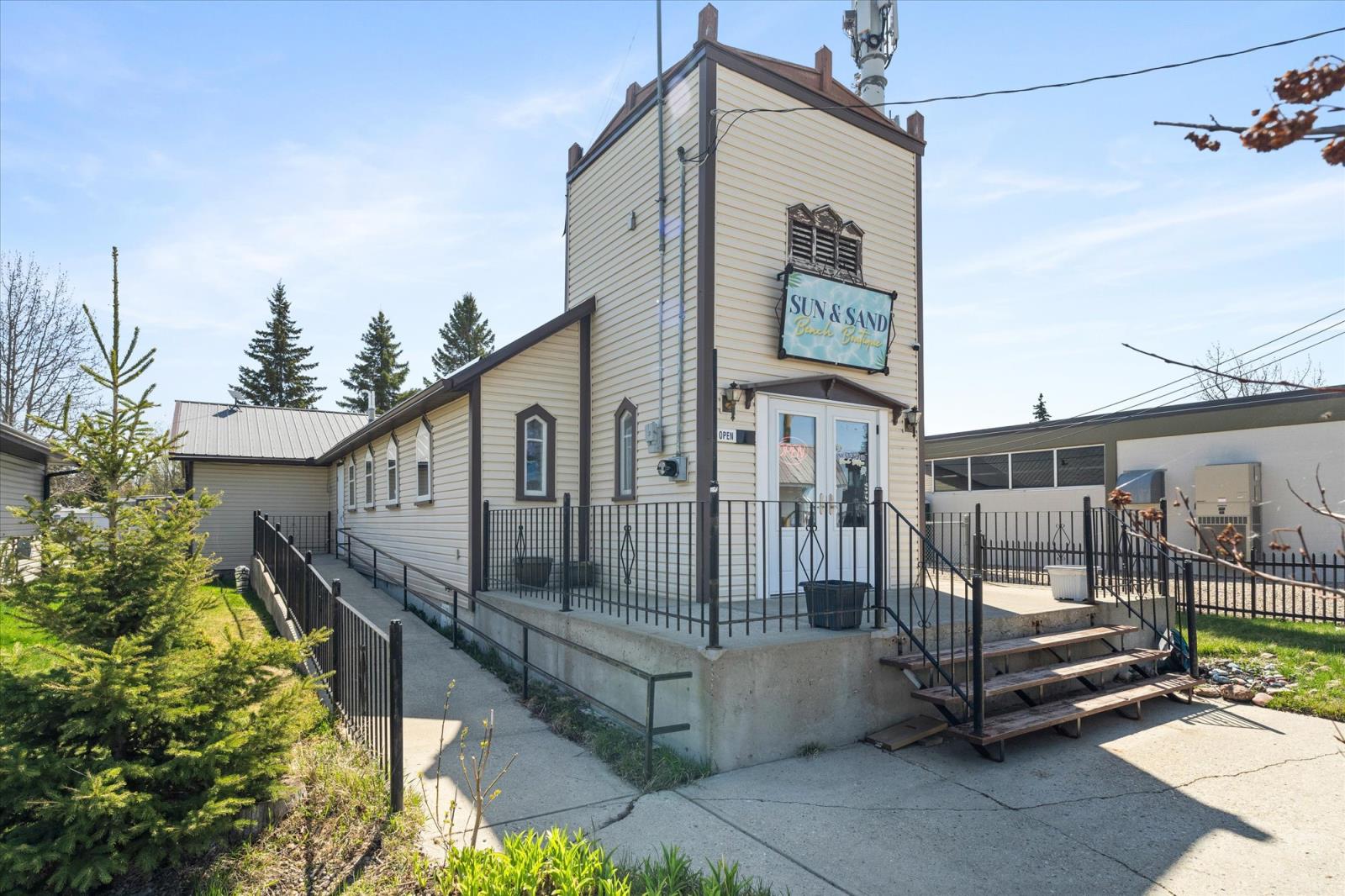 In the heart of Albert Beach, just steps from the lake! This former 1940s church has been expanded, structurally upgraded, and transformed into a charming Beach Boutique. Recent improvements include new flooring, lighting, and entrance doors. Features a low-maintenance metal roof, wheelchair ramp, kitchen, 2 bathrooms, spacious open-concept showroom, plus front and rear parking. Incredible exposure on a high-traffic main street, directly across from the beautifully updated Beachside Grind, Beachside Market, and boat launch. Enjoy stunning lake views from the front deck! Zoned C-1 Commercial with endless permitted uses—retail (already set up!), bakery, bar, daycare, office, pet grooming, and more. A rare opportunity to own a piece of history in a thriving lakeside community.Other Property Types: OfficeSubject Space Width: 20Ownership Interest: PrivateSite Services: See RemarksSite Influences: High Traffic Area,Landscaped,Back Lane,View LakeTitle to Land: Fee SimpleRPR Survey Available: YesSeller Rights: NoAppointment Name: CaraAppointment Phone: 780-686-6848Paragon Listing ID: E4434601 (id:53430)