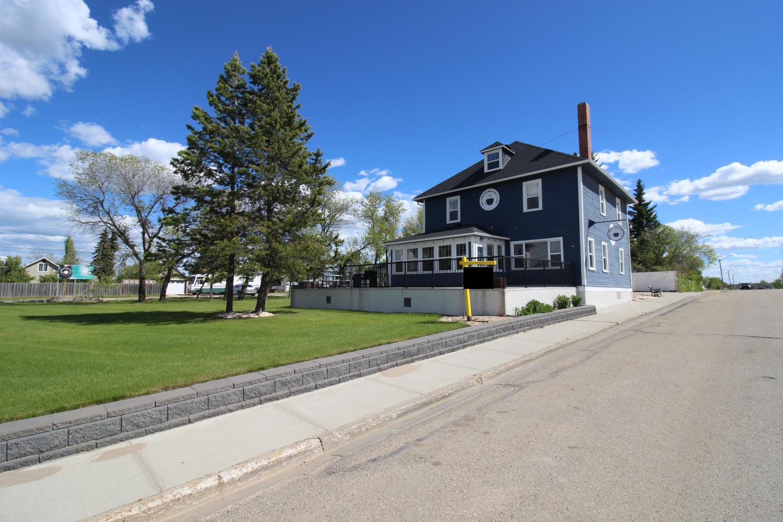 Excellent opportunity for a bed & breakfast! Located right on main street in Mayerthorpe this historical character home was previously set up to be used as a premium cafe and is now operating as an AirBNB for short term rentals. Downstairs is food/supply storage & utility room with stair access to outside for resupplying. Meticulously maintained yard on large double lot with gorgeous foliage and rock garden. On/off street parking with plenty of overflow parking in the back. Proper C1 zoning to start your dream business with no hassle. Upgrades to building include a full HVAC system in 2018 with forced air, heat and A/C. Also in 2018 a new deck on pilings, parging, new retaining wall and new sidewalks. New shingles and eaves were done in 2021. Highway sign for advertising negotiable. Option to live where you work with application for rezoning through town. (id:53430)